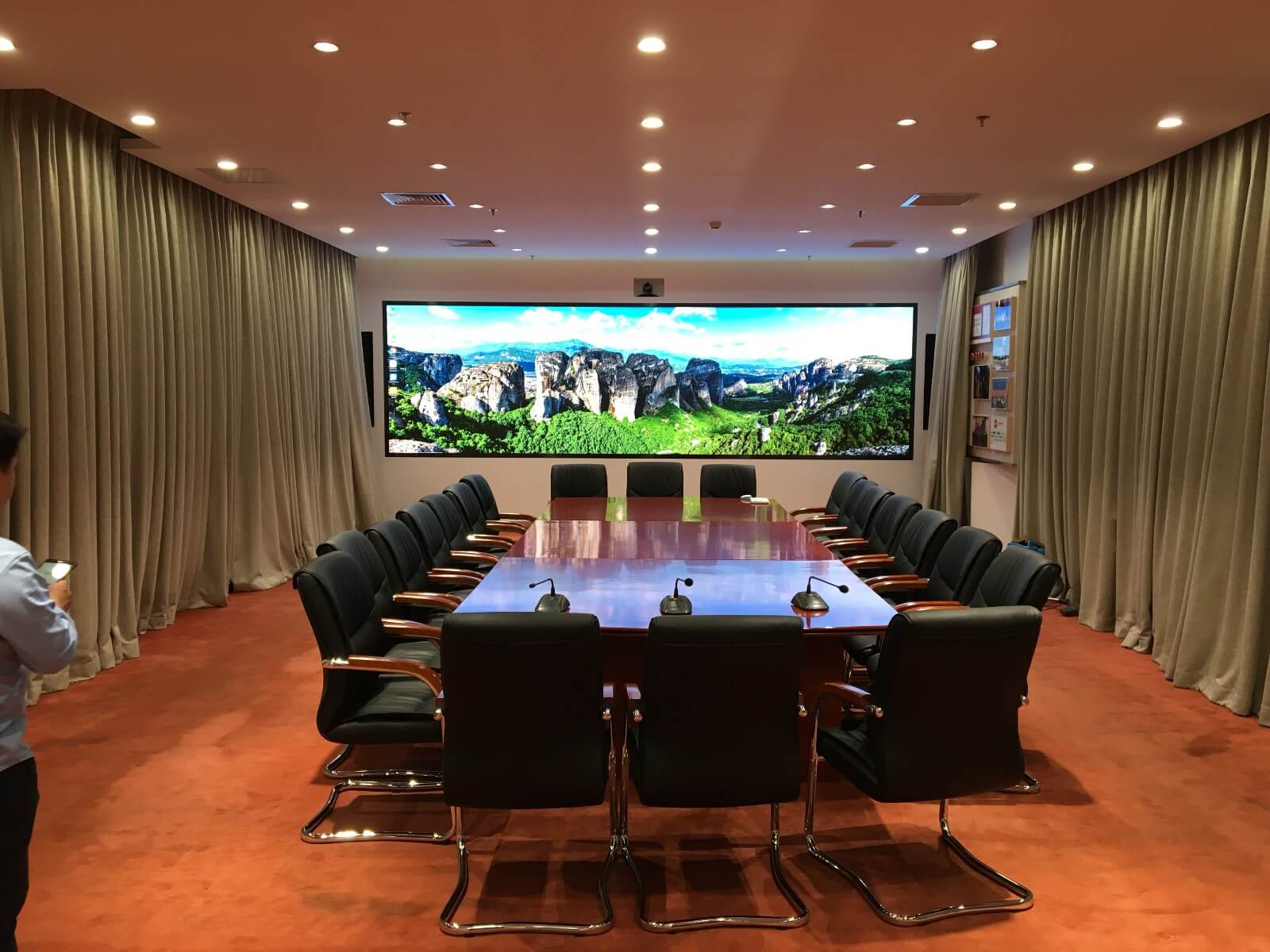 1.可实现大屏幕显示功能,覆盖整个报告厅所有参会人员全方位无死角可视观看;可满足报告厅三个分区独立显示使用,也可满足整个报告厅整体使用,两者之间可通过中控一键切换;
